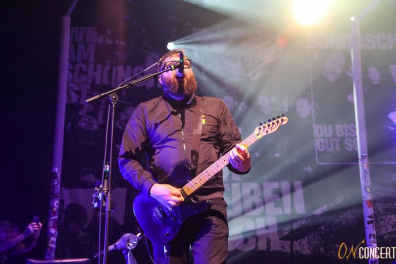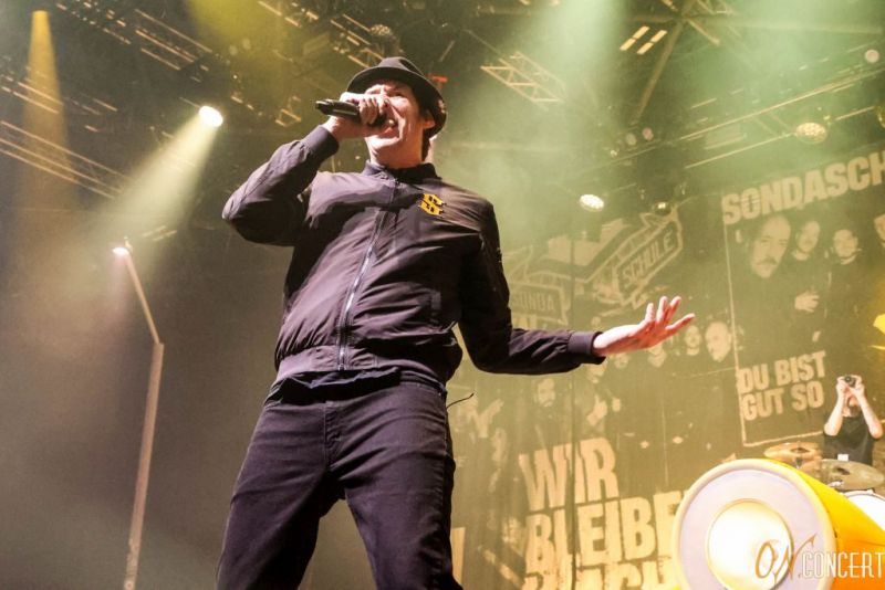 Nach kurzer Umbauphase fällt dann um 21.00 der Vorhang und die Sondaschule betritt unter Jubel die Bühne. Die Band spielt einen Mix aus altem und neuem, wobei man sagen muss, dass auch die neuen Songs wie „Wir bleiben wach“; „Ärgerlich“ und „Auf einen neuen Tag“ beim Publikum hervorragend ankommen. Es wird getanzt, getrunken und gefeiert. Die Band, aber auch das Verstorbende Bandmitglied „Fummi“ wird immer wieder gefeifert.